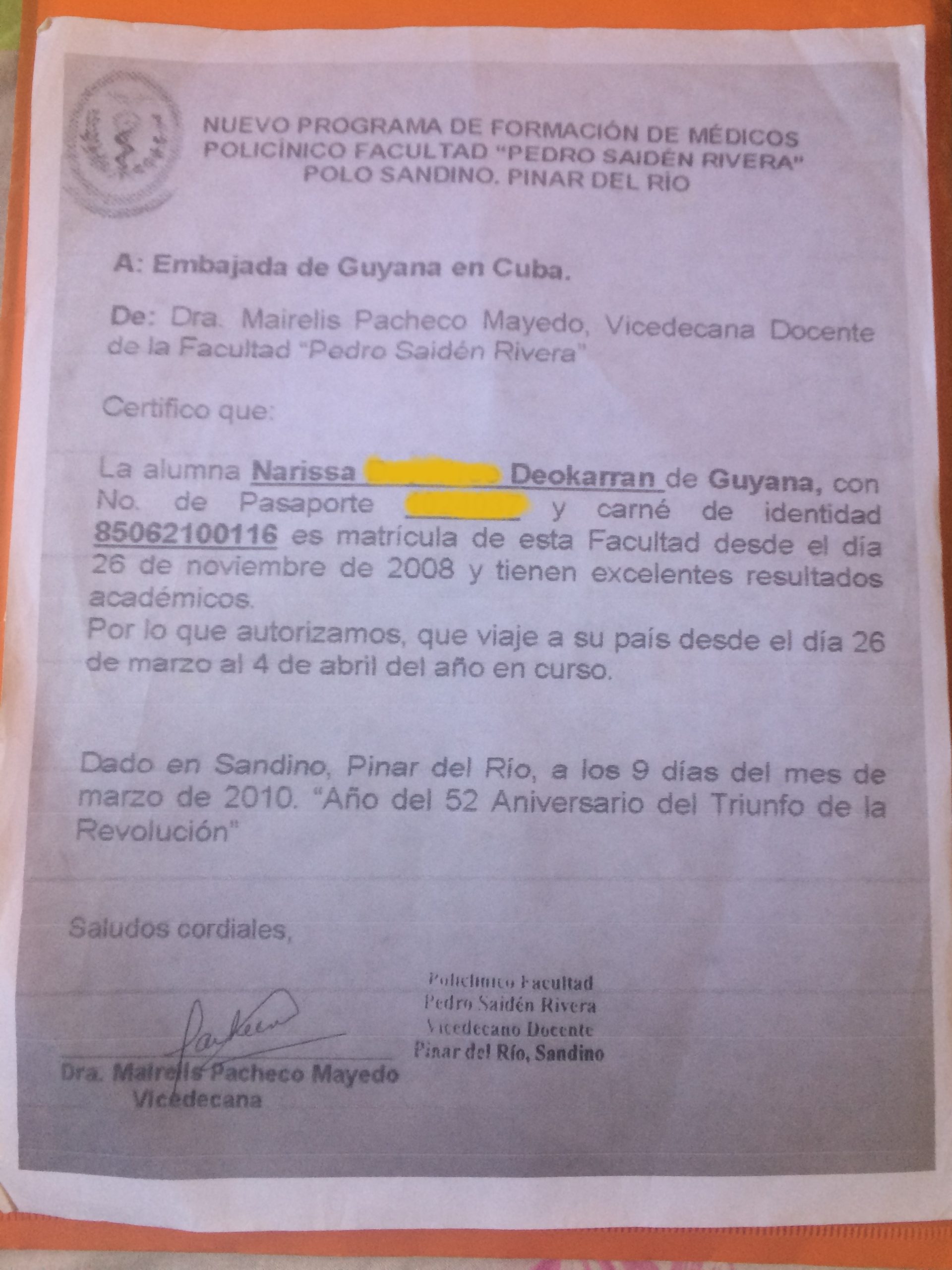 When I embarked on my studies in November 2008 there were almost a 100 persons on that journey including 5 students – that I know of and can name – who studied in Cuba before but returned to Guyana due to personal issues. These 5 students, including the daughter of a prominent politician of the then ruling party, were given ‘second chances’ to continue their studies and from what I’ve heard from friends all were able to graduate medical school. Why weren’t I given a ‘second chance’ like them?